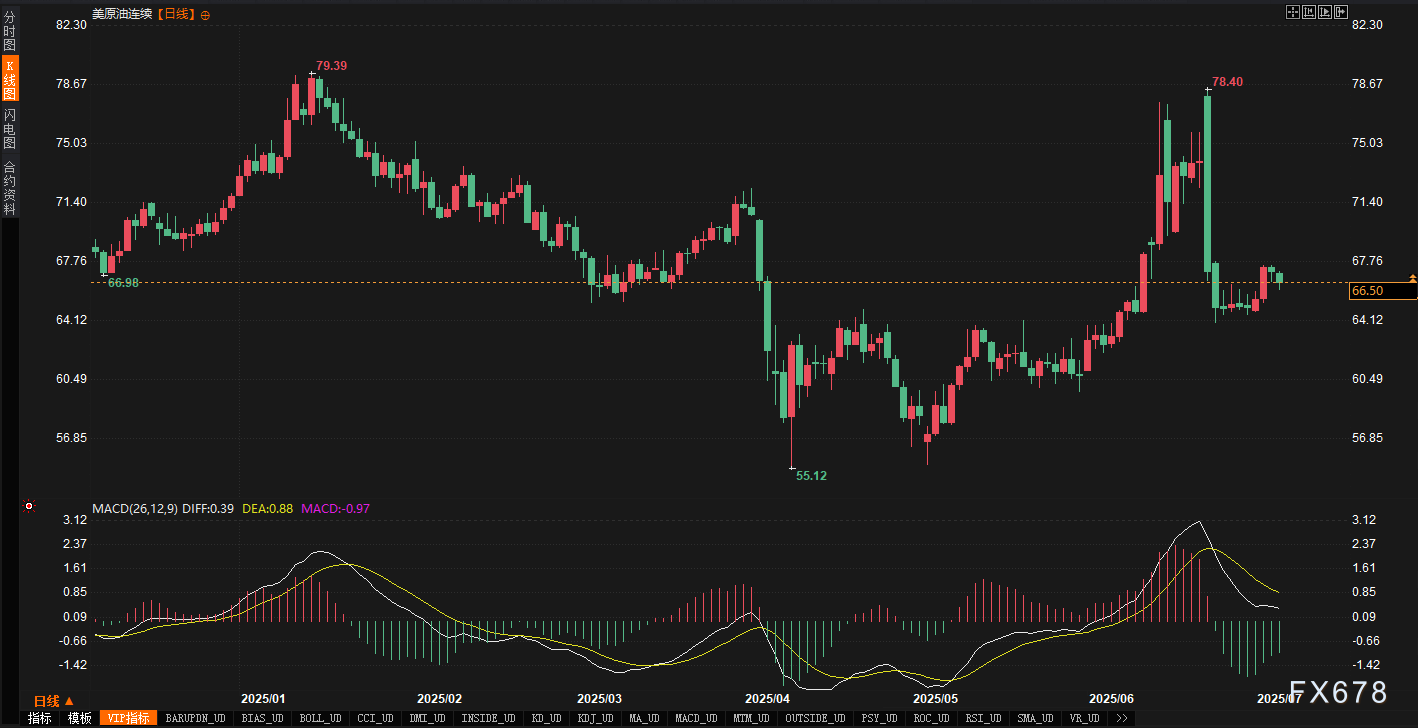 本周(6月30日至7月4日),国际原油市场经历了一周的震荡行情,布伦特原油和WTI原油期货价格在周初受地缘政治缓和及OPEC+增产预期影响承压下行,但周内逐步企稳,最终录得小幅周线涨幅。本文将回顾本周原油市场走势,总结相关经济数据与事件,并梳理分析师和机构的观点。